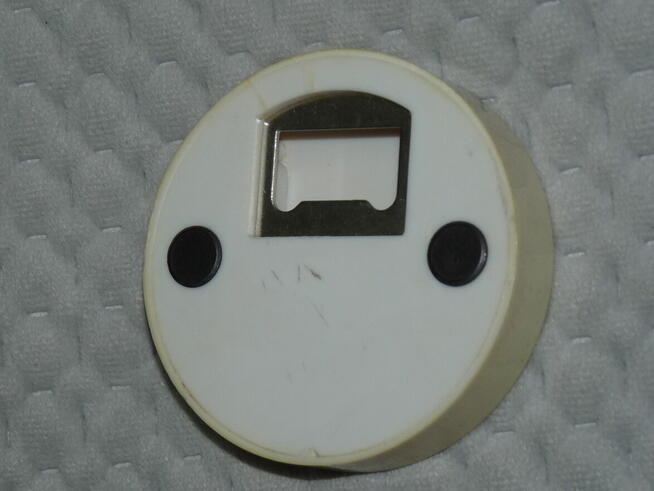 Otwieracza do butelek zamkniętych kapslami. Z tyłu otwieracza znajdują się dwa małe magnesy do przytwierdzenia na ...