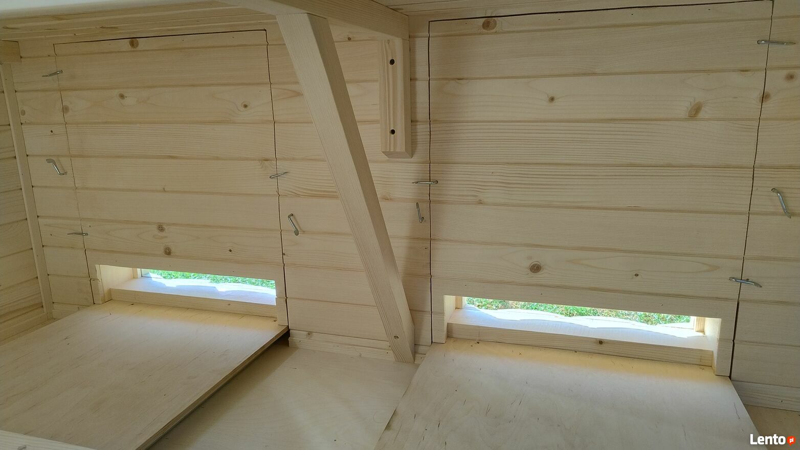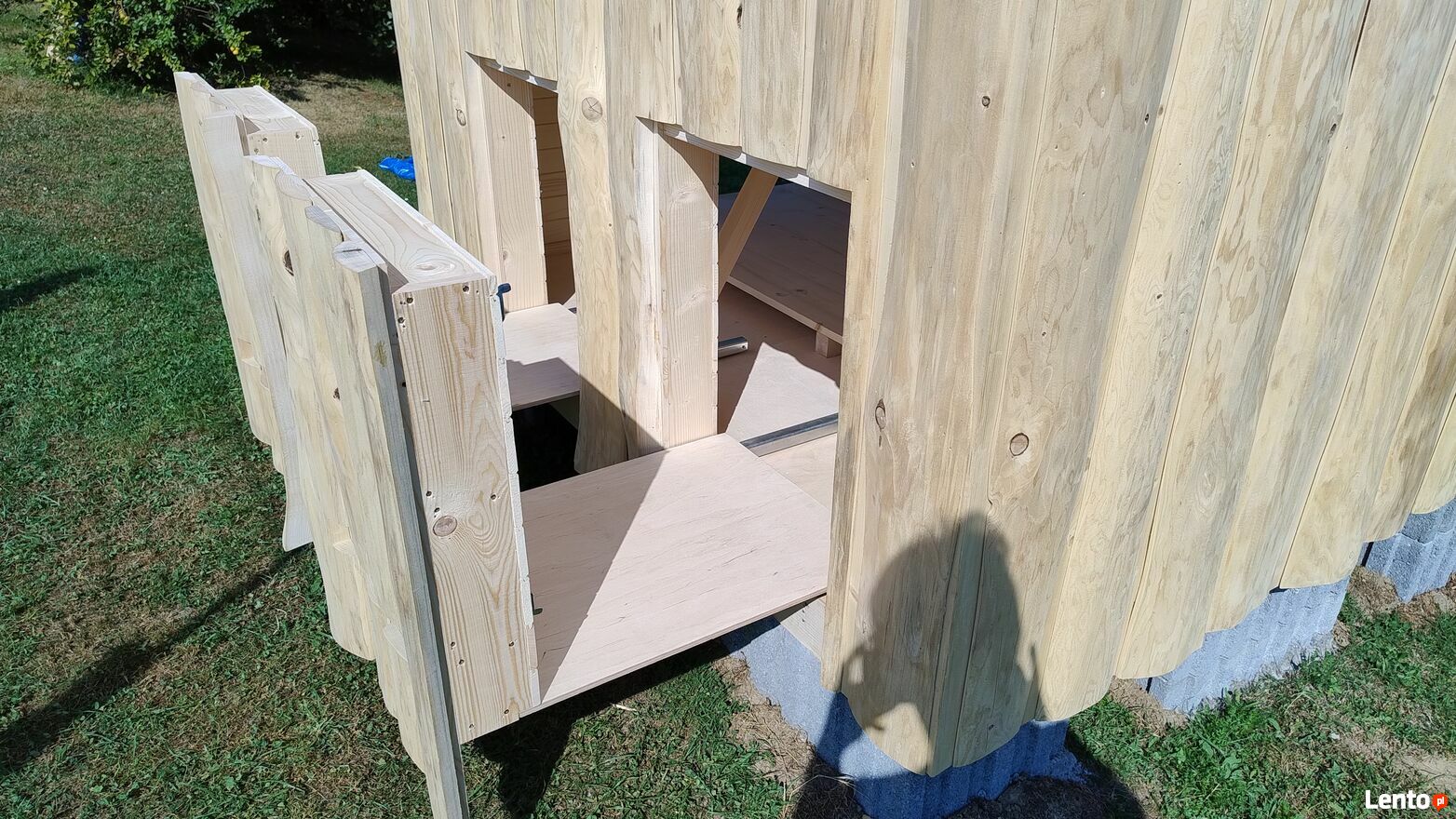 Wewnątrz domek wykończony boazerią. Dach z płyty bitumicznej. Drzwi zamykane na klucz. Możliwość transportu.