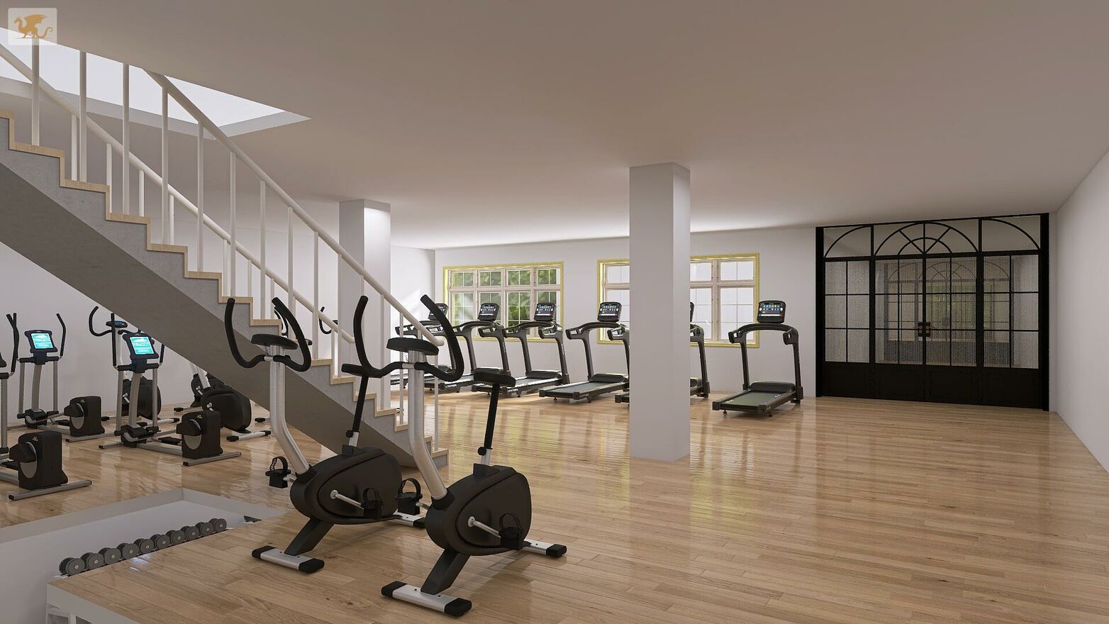 Każdy poziom oferuje przestrzeń typu open space, umożliwiającą swobodne kształtowanie układu funkcjonalnego - od dużych sal treningowych, przez strefy usługowe i sprzedażowe, aż po zaplecze biurowe i techniczne.