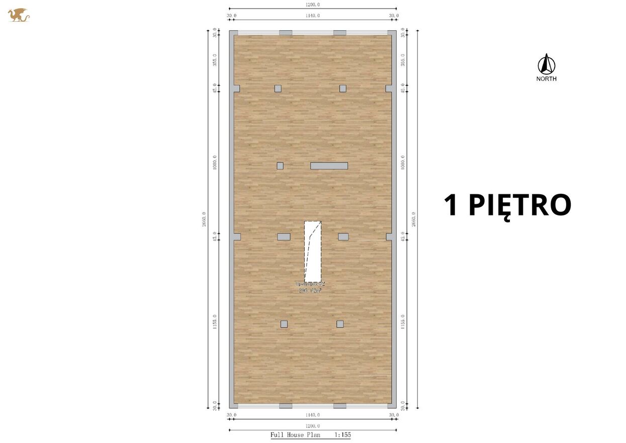 1 piętro: 295,6 m2 duża, otwarta przestrzeń typu open space