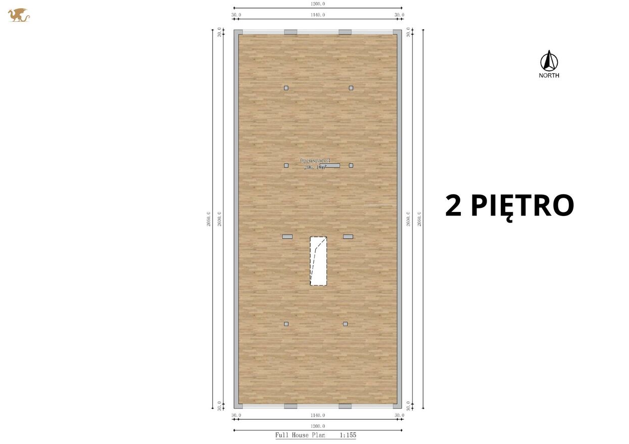 2 piętro: 296,4 m2 kolejna pełna kondygnacja z możliwością dowolnej aranżacji
