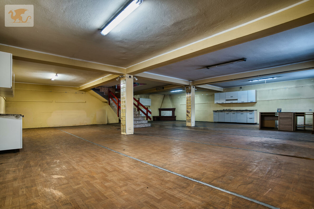Oferta dotyczy wyłącznie budynku głównego. Istnieje możliwość wynajęcia dodatkowej przestrzeni widocznej na planie parteru (przejście oraz hala) warunki do ustalenia w drodze negocjacji.