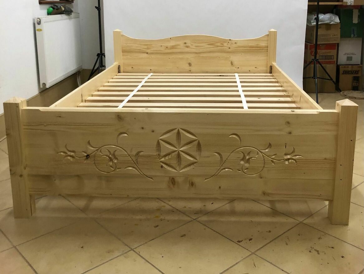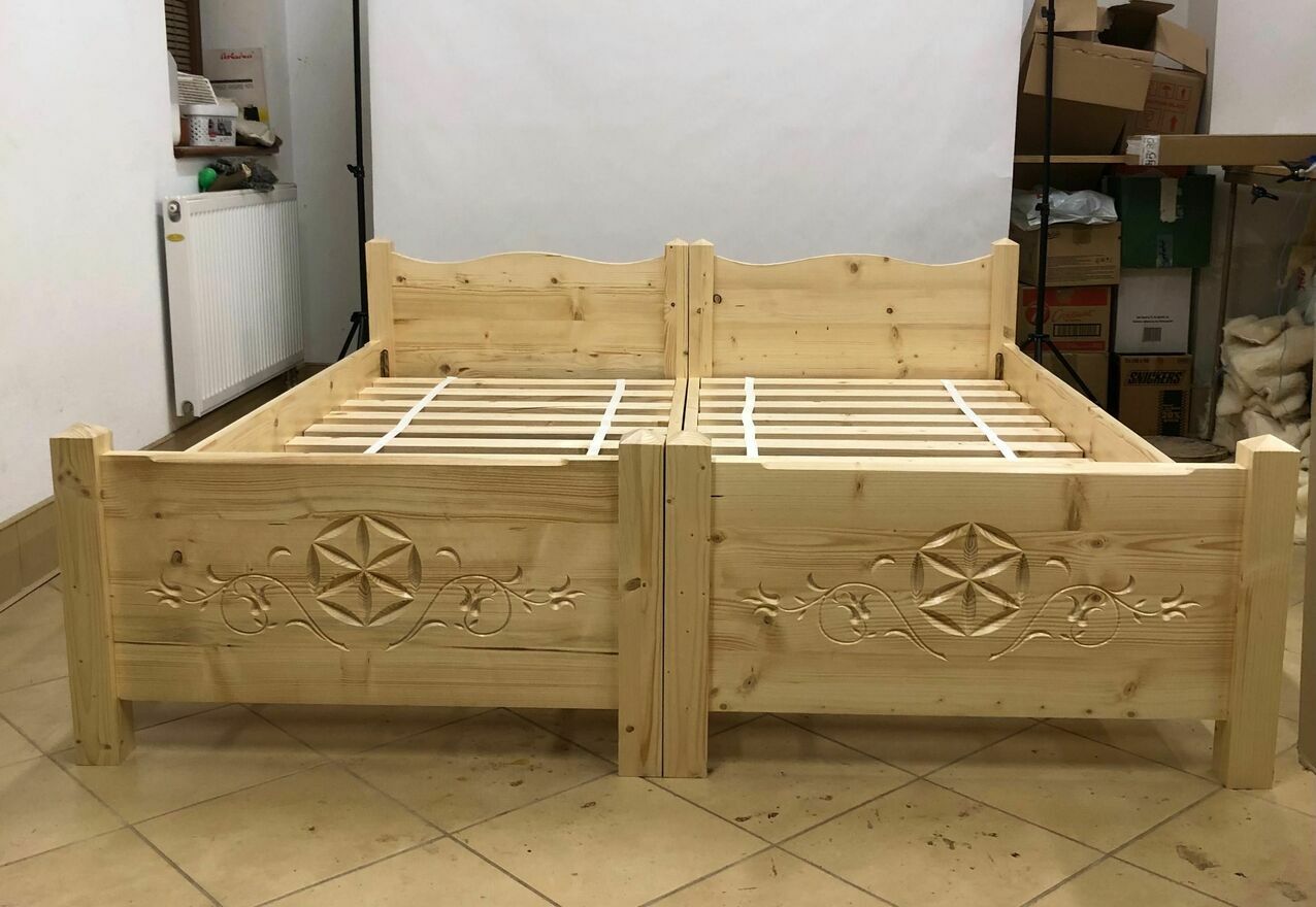 Łóżko góralskie drewniane bogato rzeźbione
