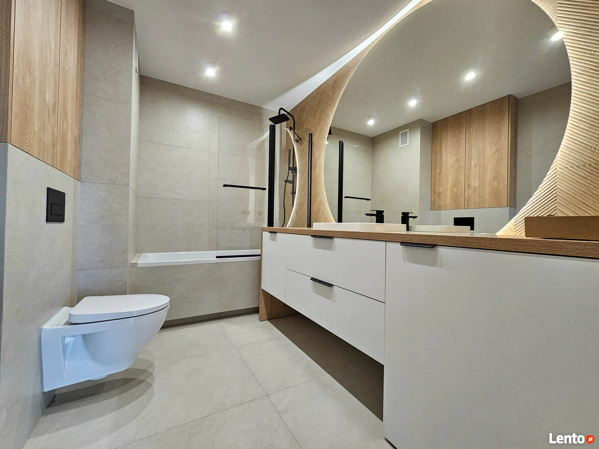 Mieszkanie nowocześnie wykończona oraz wyposażone w zabudowę kuchenną, armaturę łazienkowa oraz sprzęt AGD (lodówka, piekarnik, indukcja, okap, zmywarka, lodówka) zawarte już w cenie. Mieszkanie wykończone w jasnych kolorach, pasujących do każdego stylu.