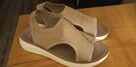 Do sprzedania damskie sandały beżowe z ozdobnymi złotymi okuciami „Evento”, z gumką utrzymującą but na stopie, ...